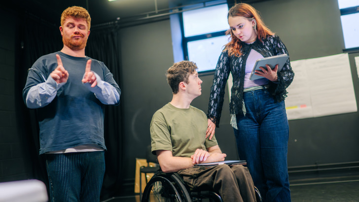 Written by Hana Pascal Keegan, Gabriella Sloss and Robert Softley Gale, and directed by Robert Softley Gale, (We indulge in) a bit of roll play takes the audience on a funny, honest journey through the realms of disability and sex, from the stand up stage to the family kitchen table, the online world and beyond.