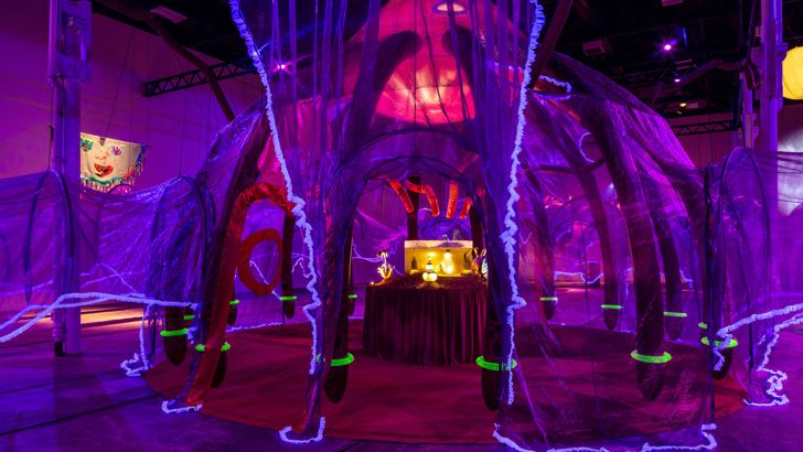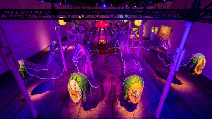 Tramway’s vast gallery space has been transformed into a sub-aquatic world shaped according to the ancestral logics of the Song family, which serves simultaneously as a spectacle, a memorial and a refuge. Weaving history, memory and imagination, the project will immerse visitors in a phantasmagoric watery abyss populated by ancestral characters.