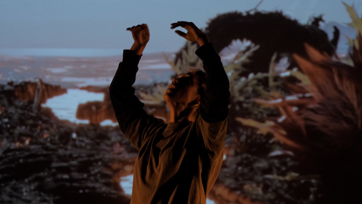 The Violet Hour asks if new figures and narratives can be found that stand in opposition to humanity’s self-destructive drive and the natural disasters that result from this. The piece proposes a surreal exploration of the relationship between humans and our surroundings, stretching the notion of how we are influenced by and implicated in the changing ecologies around us.