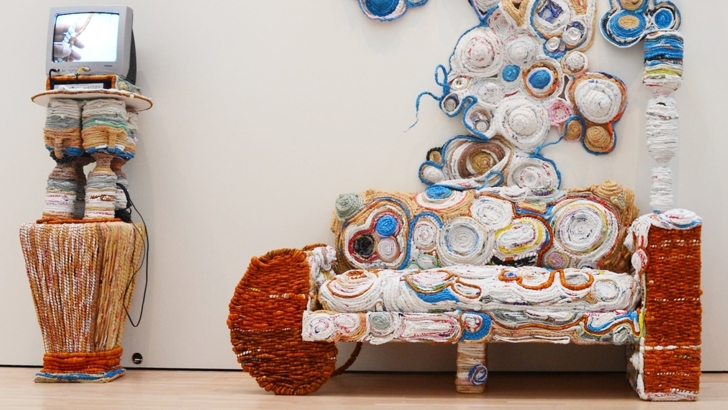 She added “I constantly reflect on the implications of our modernity’s: consumptive systems of mass accumulation, waste generation or social attitude to value and the expiration-date syndrome, cultural assimilation and colonial orientations on beauty, authenticity and newness. In addition to metaphorically and spontaneously engaging these “old” plastic objects, I try to emphasize the potency of traditional crafting methodologies, highlighting the mark of the hand through supposedly menial obsolete techniques such as Threading and loom weaving."