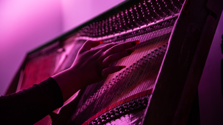 Ruby will be joined for part of the residency by artist Hannan Jones. Together they will continue this work with the pianoharp, experimenting with analogue mixing systems, electronics, voice and instrumental sound.