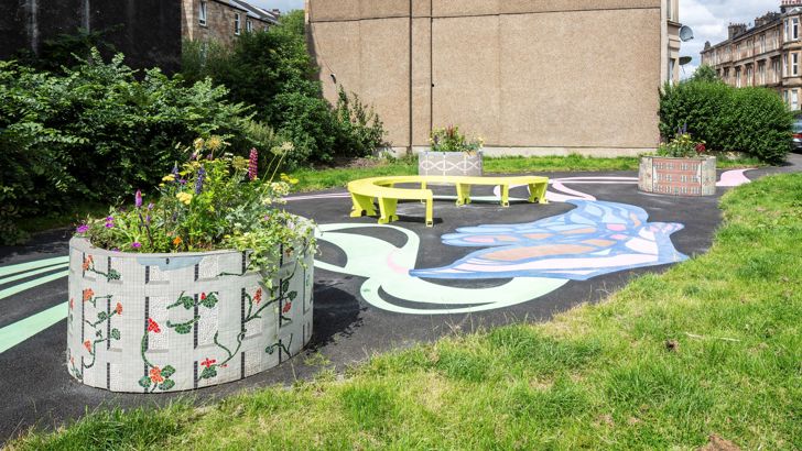 With crucial funding from the Art Fund – Respond and Reimagine Grants for Arts Organisations, Tramway has raised money for a series of permanent public commissions by Glasgow based artists and designers. These are made for and situated in our immediate community, and enhance planting and greenspaces.