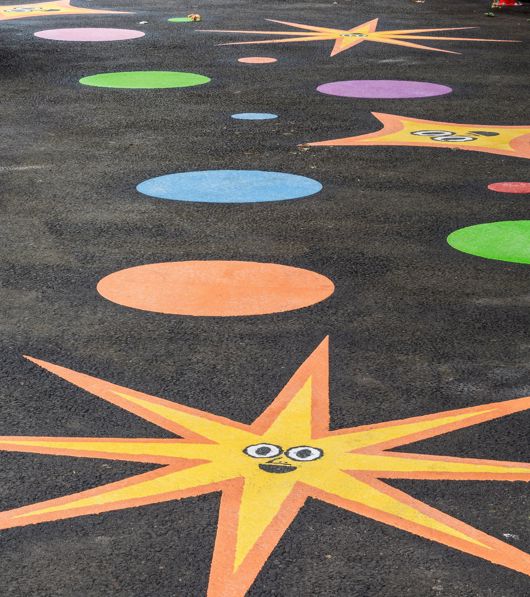 As a symbol of inspiration, hope, and renewal, Rabiya Choudhry has created a route of stars. The floor mural presents a bright, hopeful path towards a shared future and also echoes ‘Walks of Fame’, fostering a sense of community and the idea that each and every one of us matters.