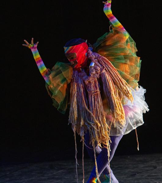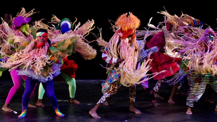 Bursting with pure and uncompromising joy, complete with live music on stage, ten dancers and two musicians perform the cycle of life with explosive energy, marked by the urban chaos of the Nigerian city of Lagos. Dressed in a kaleidoscopic array of colour and cloth, body paint, masks and props, they move with exuberant energy in this multi-sensorial work.