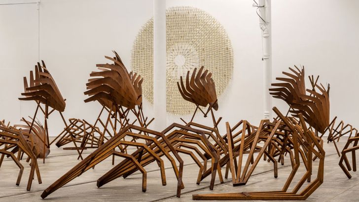 Working from her home - a farm in the small village of Koplany in Eastern Poland, artist Iza Tarasewicz (B.1981) utilizes raw materials and rural systems of production to create complex spatial installations that draw connections between cellular, social, agricultural, and celestial interactions.