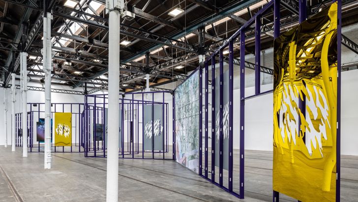 Viewers are invited to move through an immersive installation rendered in Syms’ signature purple – a reference to both to Alice Walker’s 1982 novel The Colour Purple and the special effects backdrops used in film and video. An exposed wall scaffold zig zags across the gallery creating multiple vantage points through which to encounter Syms’ ongoing episodic project SHE MAD (2015-present). A series of mirrored panels are cut to resemble ‘cookie’ filters - a device used to create lighting effects in film and theatre.