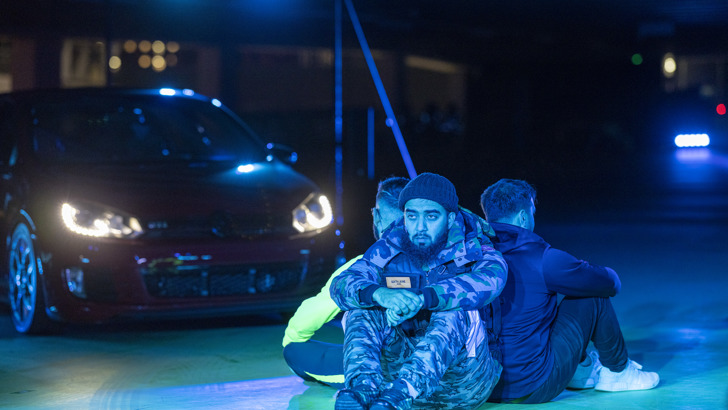 Staged in a carpark with a Supra, a Golf and a classic Nova, Peaceophobia brings together cars and theatre with cinematic lighting and an original electronic sound score.